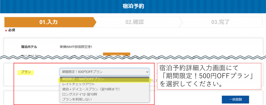 東横INNクラブコーポレートビジネス会員サイトの専用プラン「期間限定!500円OFFプラン」にてご予約ください。